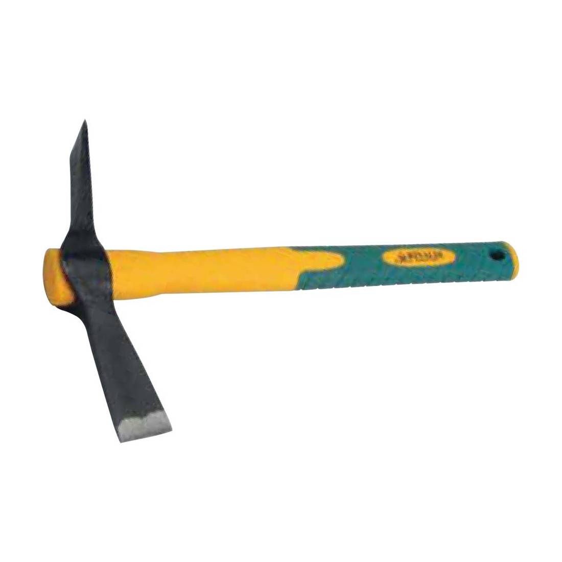 Testa in acciaio temprato. Manico in fibra di vetro, impugnatura in gomma.