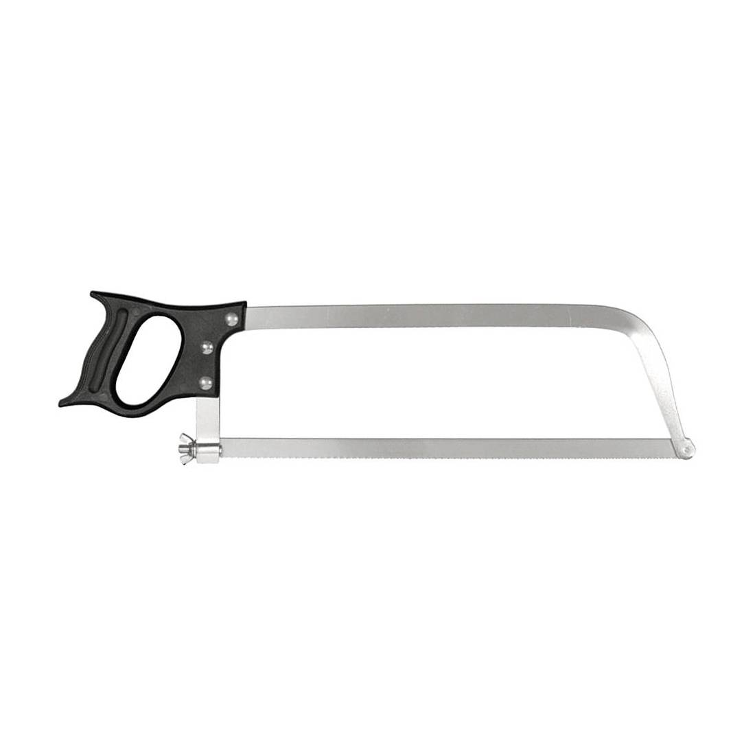 Sega professionale, specifica per il sezionamento di carni con osso. Impugnatura in polipropilene nero, lama in acciaio inox, archetto in acciaio al carbonio. Certificato per contatto con sostanze alimentari secondo la normativa ISO 22000, certificato NSF. Dimensioni: cm. 60x2x15, peso 920 gr. Prodotto 'Made in Italy'.