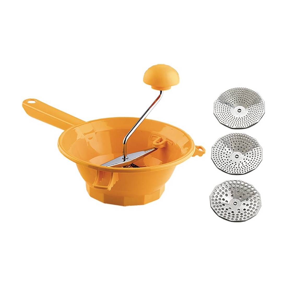 Funzione manuale. In plastica alimentare, con tre dischi inox.