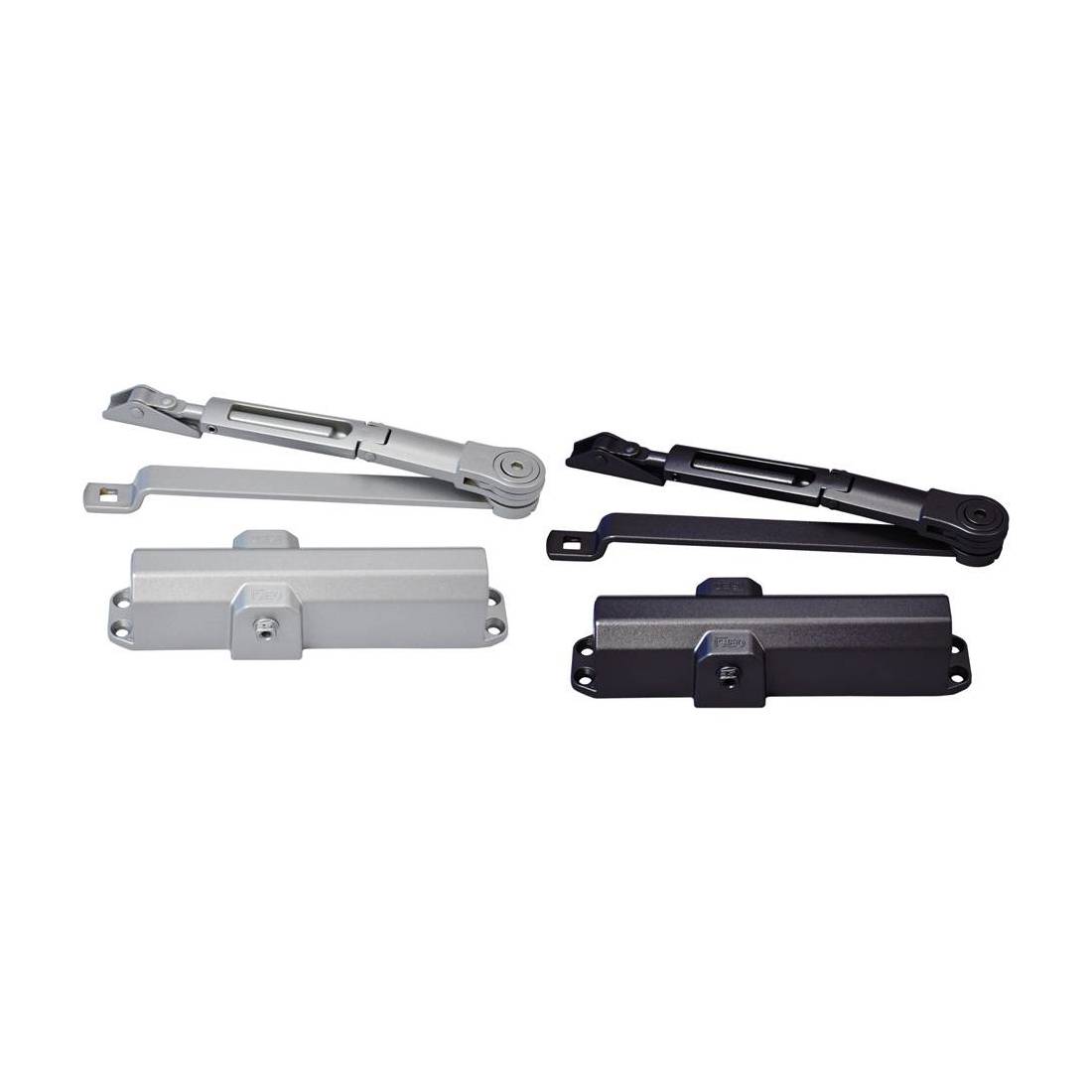 Forza variabile EN 2-3. Peso porta EN2 - Kg 25 ÷ 45, peso porta EN3 - Kg 45 ÷ 60. Braccio a compasso, con arresto.
