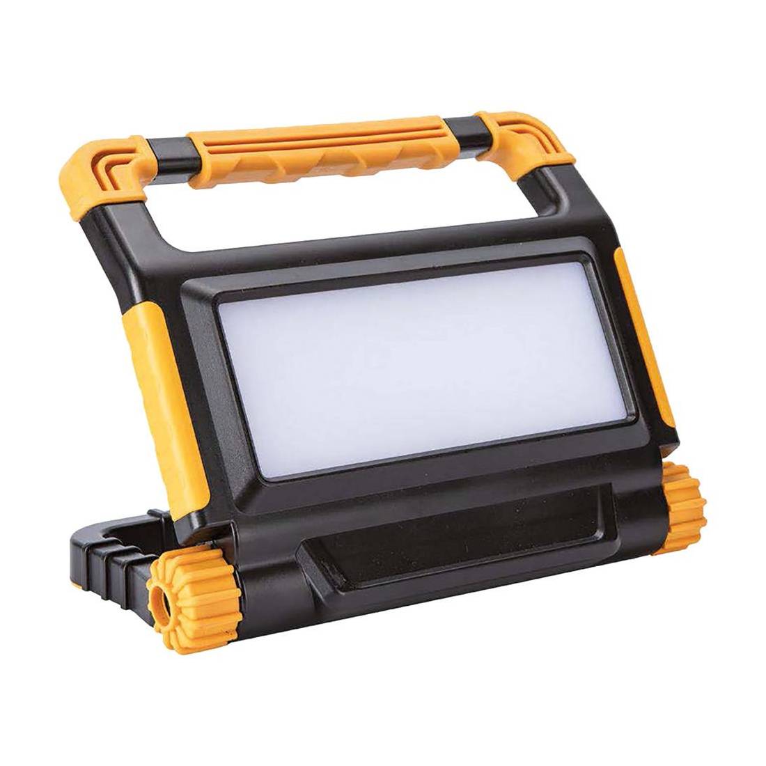 Ricaricabile. Tipo orientabile, adatto per ambienti esterni. Corpo plastica antiurto, autonomia 2/3 ore (100% - 2800 lumen), autonomia 5/6 ore (50% - 2400 lumen), fascio di luce 120°. Protezione IP54, tipo luce 6500K. Funzione Power bank e porta USB per ricarica. Dimensioni mm. 200x130xh.180.