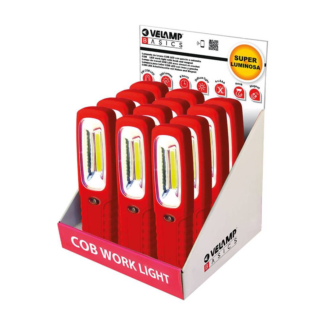 In materiale morbido antiscivolo 'soft touch'. Grazie alla tecnologia led, è capace di sviluppare grande luminosità e irradiare luce su tutta l'area di lavoro. Il gancio ruotabile e l'attacco con magnete consentono l'utilizzo avendo sempre libere le mani. Funzionamento con 4 batterie AAA non incluse. Autonomia 8 ore, 200 lumen. Display da banco da 12 pezzi.