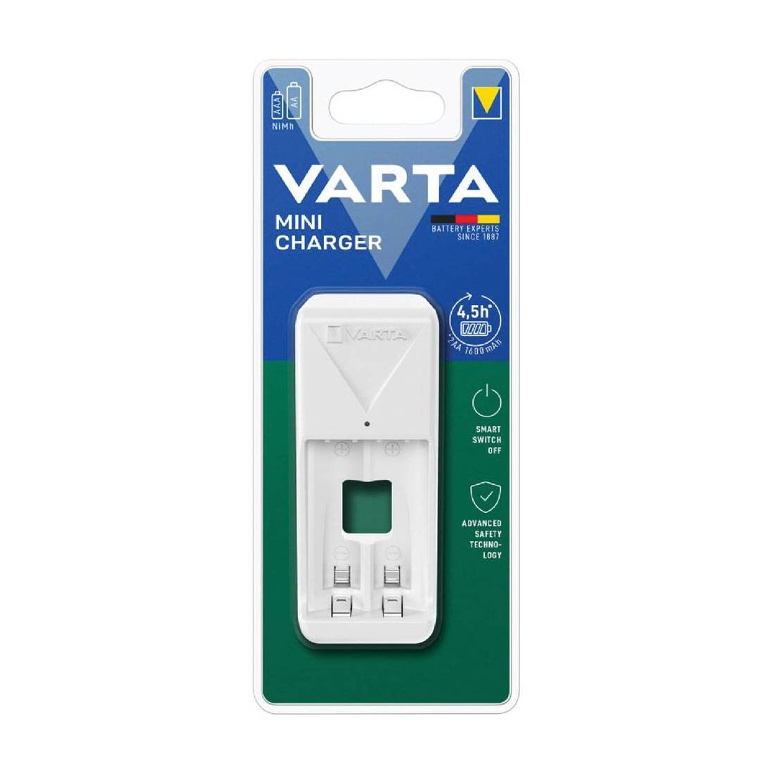 Corpo in plastica antiurto bianca, luce led per avanzamento stato di carica. Corrente di uscita 0,16A, voltaggio 230V, sistema di carica Nichel Idruro, spina 10A. Tempo di ricarica 4,5 ore circa. Adatto per stilo e ministilo. In blister.