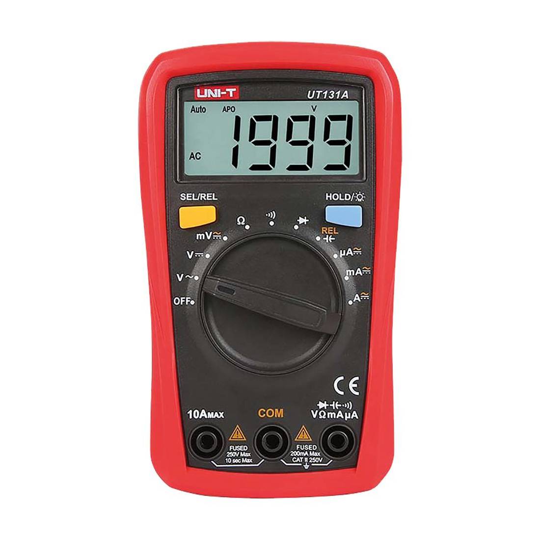 Con autorange. Per letture di tensione e corrente in continua o alternata, adatto per installatori ed elettricisti. Tensione dc fino a 250 v ± 0.8% - tensione ac fino a 250 v ± 1,2%. Corrente dc fino a 10a ± 0,8% - corrente ac fino a 10 a ±0,8%. Funzione provadiodi, buzzer di continuità, indicatore batteria scarica. Alimentazione a batteria 2 pile AAA 1,5V. Sicurezza elettrica EN 61010, cat I 600 v, cat II 300 v. Dimensioni: 134x77,5x50 mm. Dotazioni: manuale, puntali, batteria, custodia.