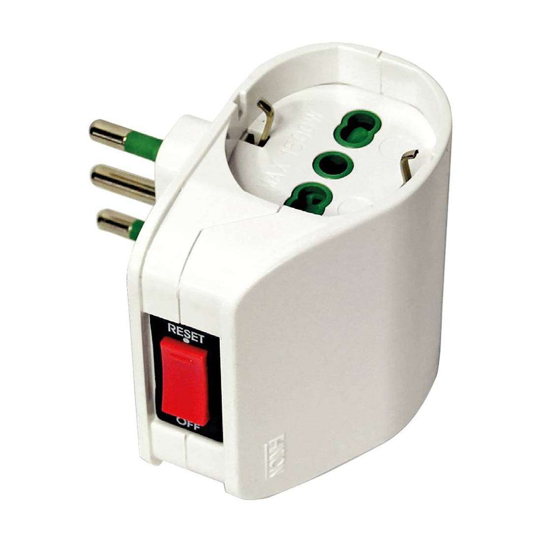 Presa: 1x2P+T10/16A + 1P+T Schuko. Spina: 2P+T10A. Il limitatore termico integrato ed azionabile tramite pulsante, interviene staccando automaticamente i carichi evitando il black-out. Il ripristino, invece, avviene manualmente riazionando l'interruttore. In confezione appendibile.
