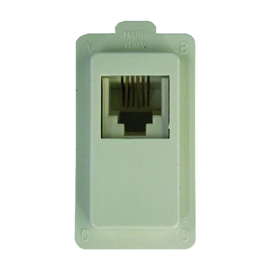 Presa telefonica e trasmissione dati compatibile con tutta la serie Laser (Click, Alluminio, Vero Legno, Tondò e Tocco) e con le serie Magic International Bticino.