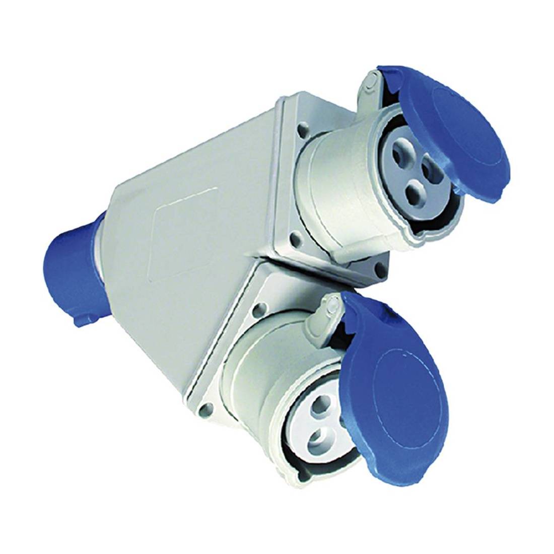 Spina: 2P + T16A CEE blu - IP44. Presa: 2x2P + T16A - IP44.