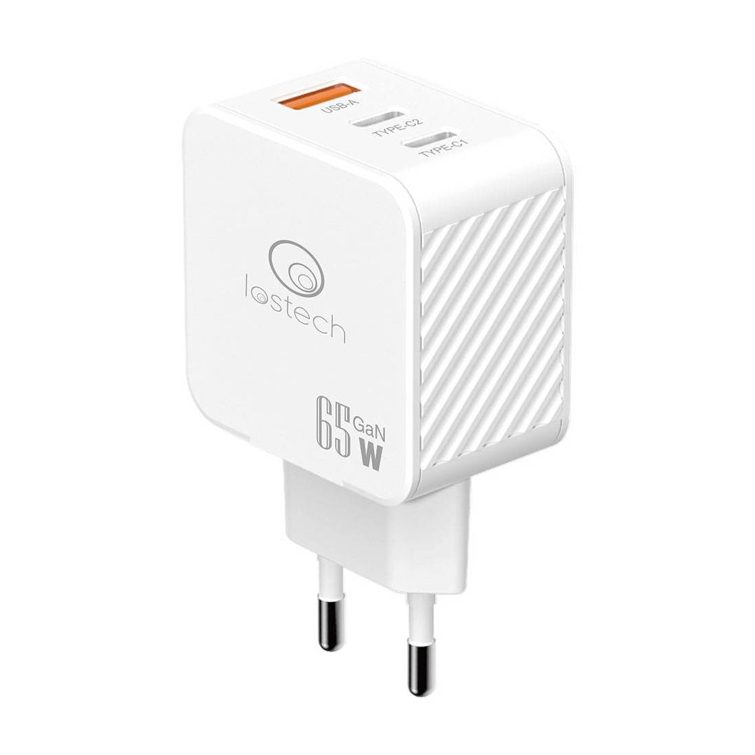 Con 2 prese USB-C, 1 presa USB-A. Output USB-C 1: 65W, output USB-C 2: 20W, output USB-A: 18W, output USB-C 1 + USB-C 2 / USB-A: 45W, output USB-C 2 + USB A: 12W. Indicato per smartphone, tablet, macchine fotografiche, notebook. In blister.