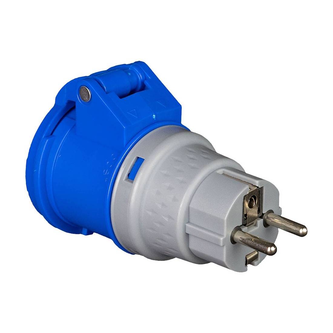 Spina: 2P + T 16A schuko. Presa: 2P + T 16A CEE blu. Protezione IP20.