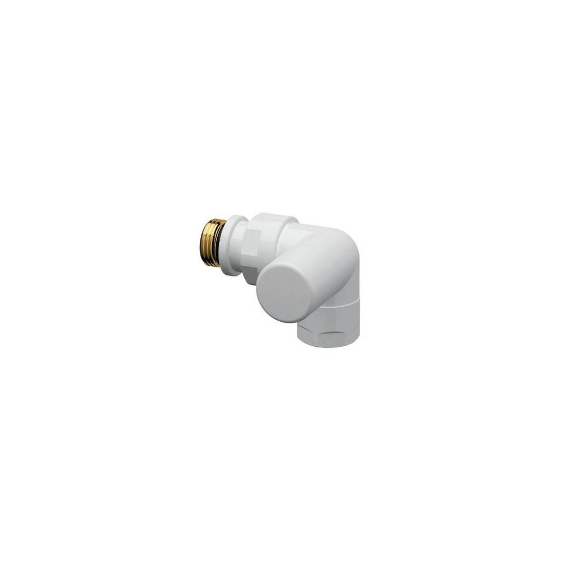 Detentore ad angolo sinistro completo di calotta. Attacco intercambiabile per tubo rame, plastica e multistrato. Codolo preguarnito con guarnizione in EPDM. Confezione in scatola singola con protezione. Calotta D. 16mm.(DianFlex) Misura: 1/2 Bianco Lucido