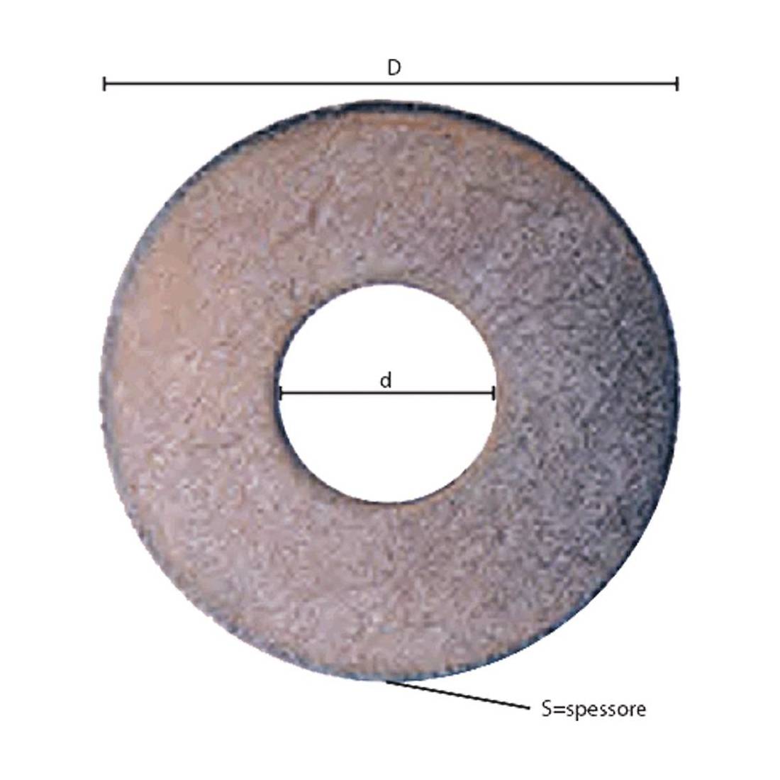 In acciaio zincato. DIN 9021. Dimensioni: S x D x d.