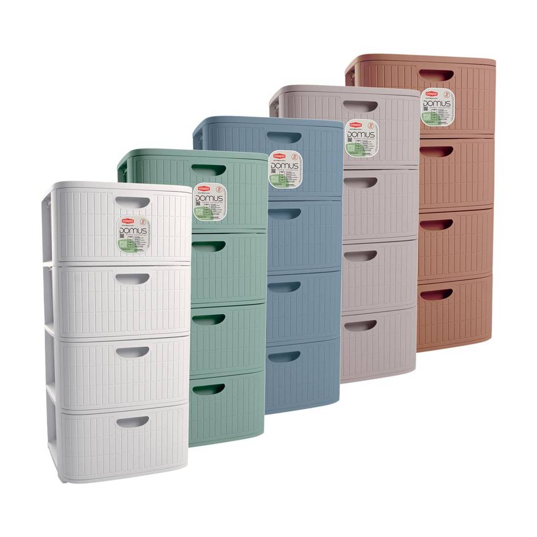 In plastica rigenerata. A 4 cassetti. Ideale per organizzare con praticità ogni ambiente della casa o dell’ufficio. Resistente, leggera e sostenibile, è dotata di piedini e ruote per un utilizzo versatile e facilmente spostabile. Dimensioni cm 40x40xH80.