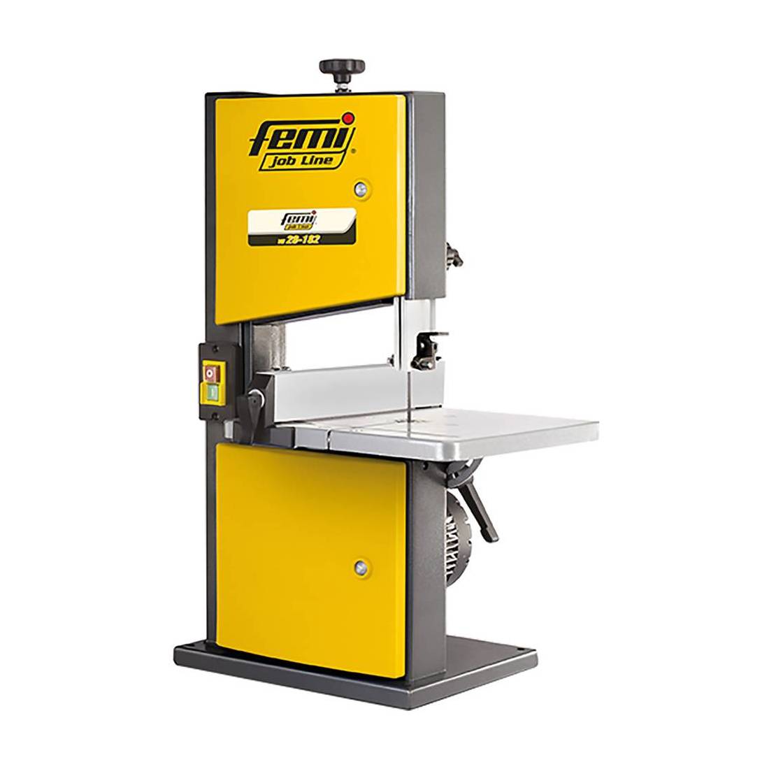 Telaio tubolare saldato, piano di lavoro mm 300x300 in alluminio inclinabile da 0 a 45 gradi. Profondita' di taglio 200 mm. Velocita' lama 900 m/min. Lunghezza lama 1400 mm, diametro bocchetta di aspirazione 40 mm. Con guida parallela, spingi legno e chiave. Fornita con: lama, guida parallela, spingilegno, chiavi di servizio.