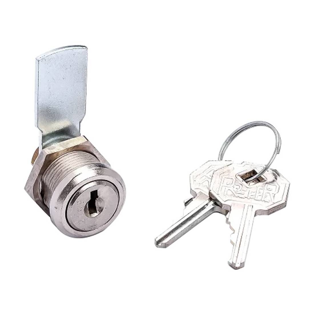 Serratura a leva universale. Struttura in zama pressofusa con filettatura M19. Rotazione a 90° con estrazione della chiave in una sola posizione. In dotazione 2 chiavi.