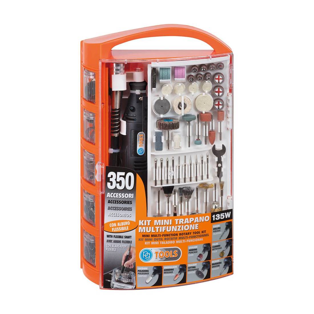 TRAPANO MINI MULTIFUNZIONE IN KIT 135 W con 350 accessori