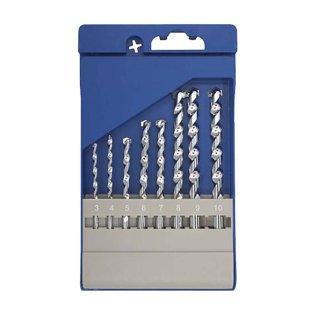 In cassetta plastica con appendibile. Indicate per forature su mattoni, calcestruzzo, cemento, pietra, granito. Misure: 3 - 4 - 5 - 6 - 7 - 8 - 9 - 10.