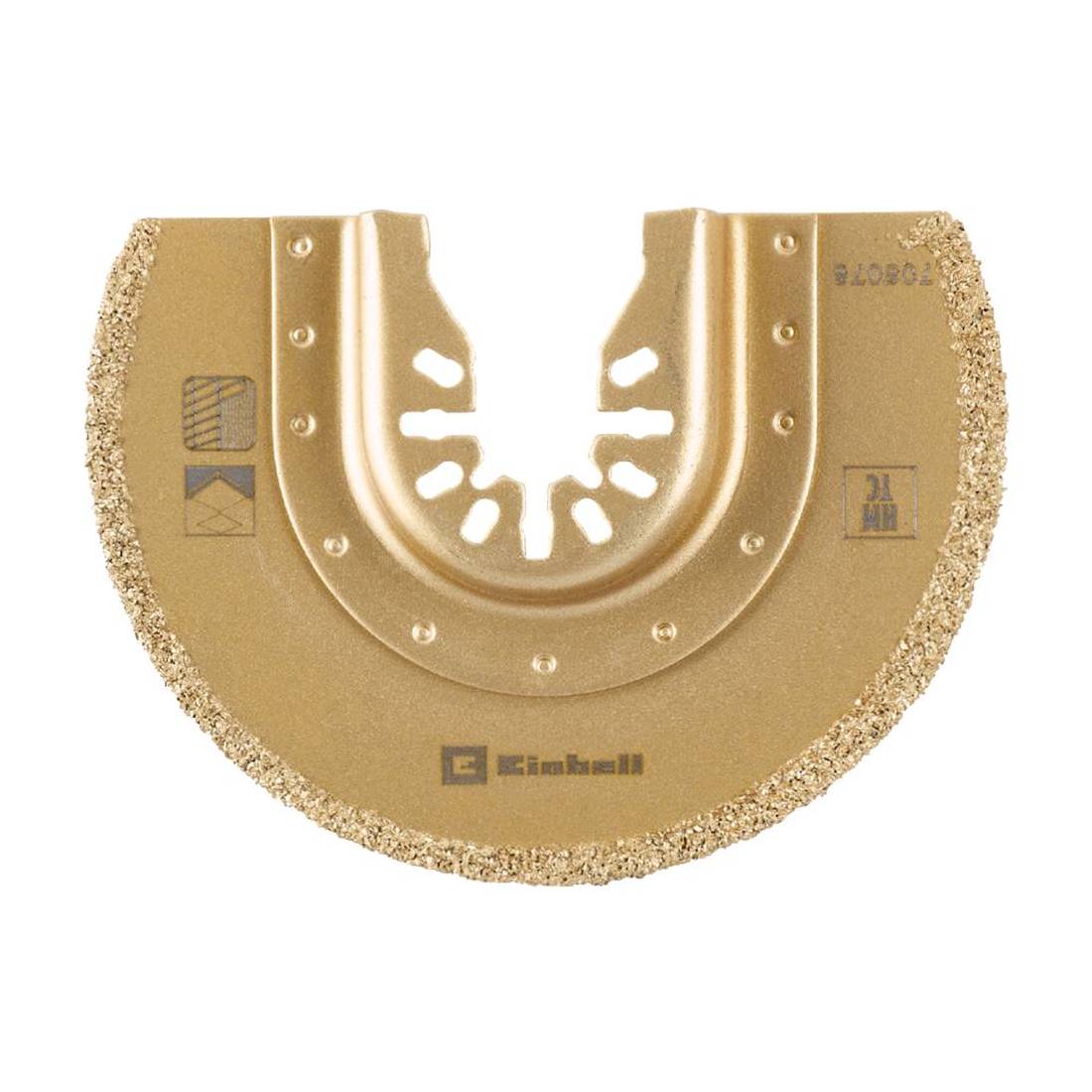 Disco semicircolare da 87 mm con rivestimento in metallo duro HM/TC. Ideale per lavori di precisione su superfici resistenti, adatto al taglio piastrelle, intonaci, calcestruzzo cellulare, mattoni e lavori su muratura leggera. Grazie al design Open Back, consente un cambio rapido degli accessori.