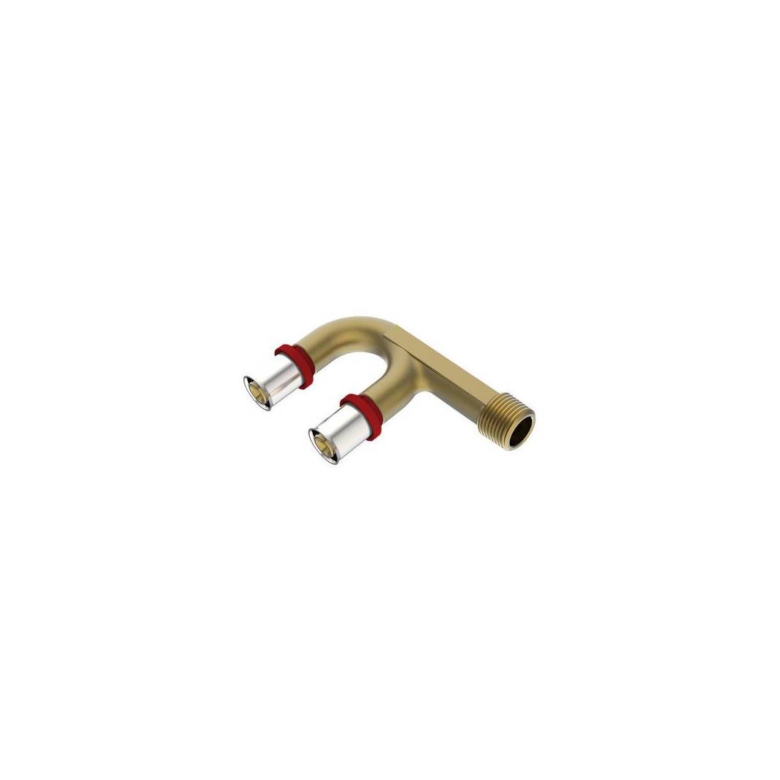 Raccordo a pressare doppio a U e con attacco laterale maschio filettato. Il corpo del raccordo è in ottone CW625N, bussole in acciaio inox AISI 304, guarnizioni O-ring in EPDM.(DianFlex) Misura: Diam. 16x16 - 3/4