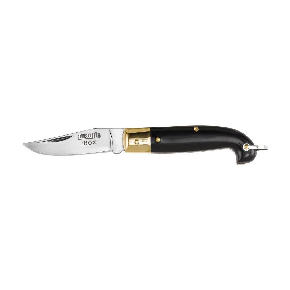 Lama in acciaio inox. Manico in finto corno.